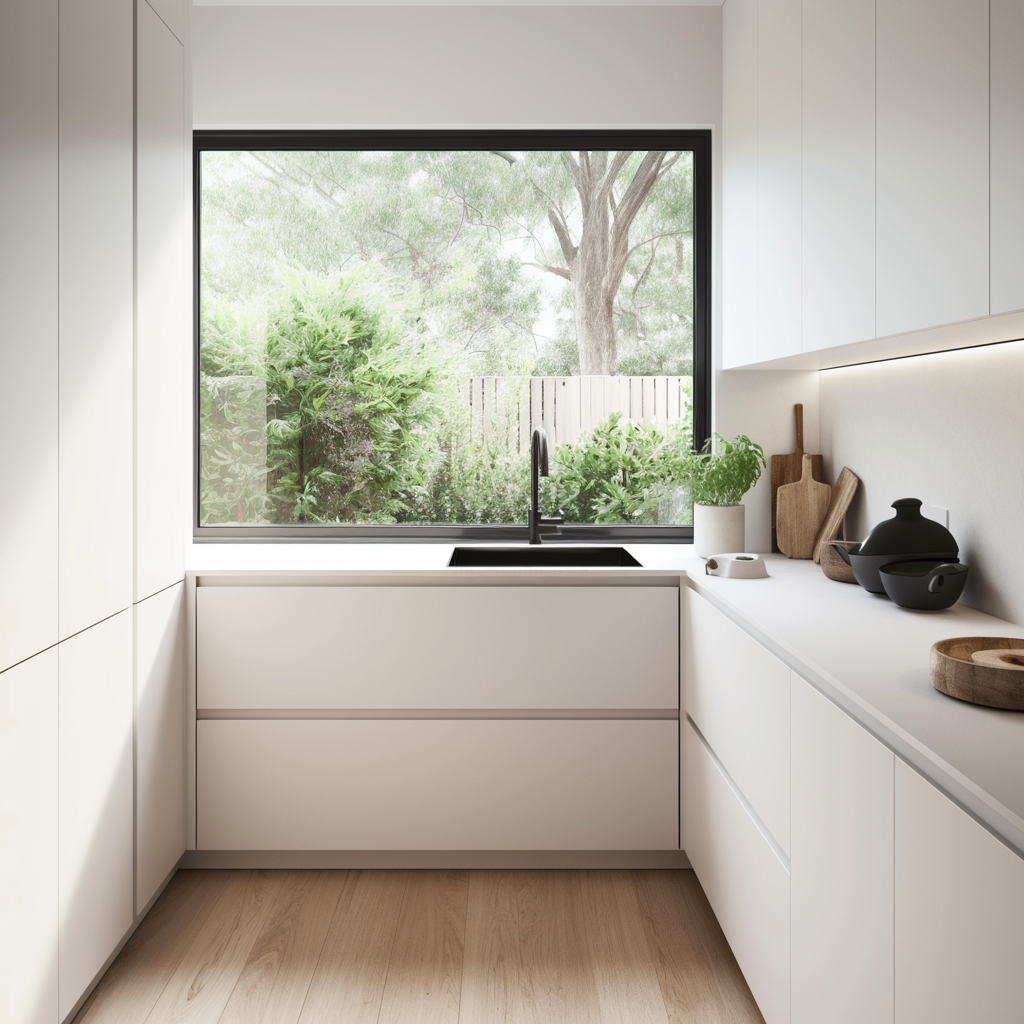 Crafted from solid wood, the kitchen bears the hallmark of nature’s finest. It’s a testament to years of nature’s nurturing, resulting in a product that embodies grace and endurance. The countertop, a sheet of transparent quartz, refracts ambient light in ways that animate the space, giving life to its intrinsic natural patterns.